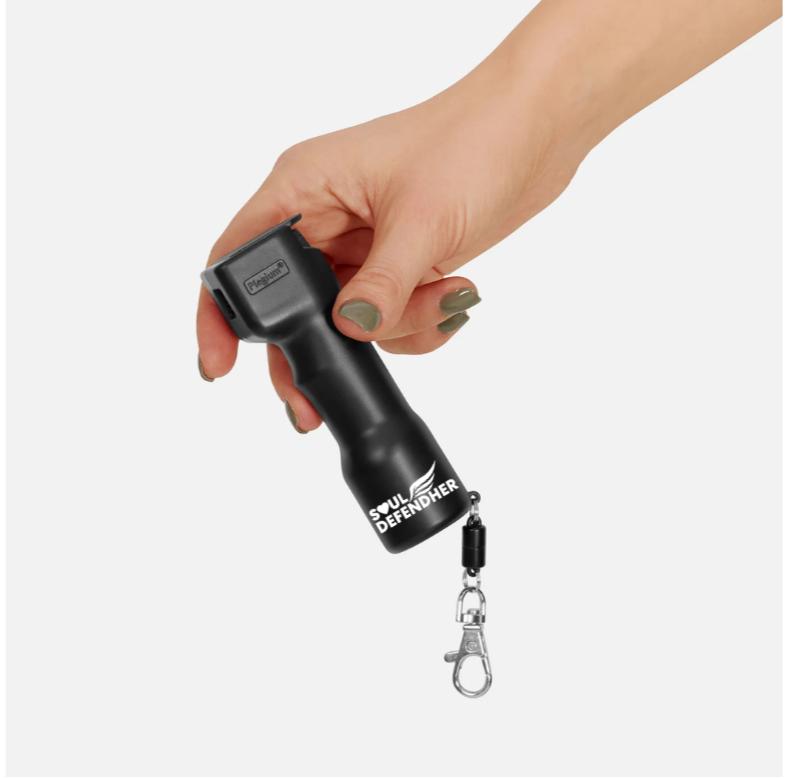 Empower your safety with the SOUL DEFENDHER™ Smart Pepper Spray, a self-defense tool featuring maximum strength 1.33% MC pepper spray, marking red UV dye, 130db siren, and bright alerting strobe light.